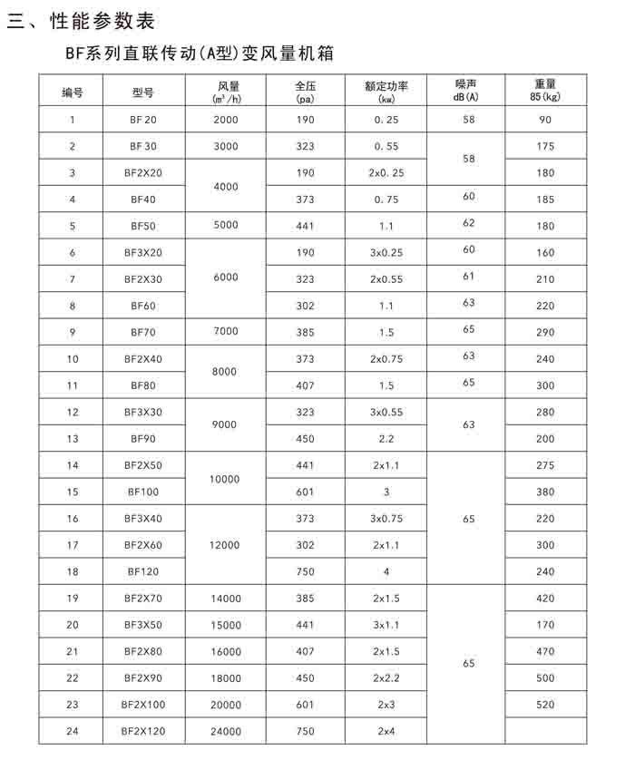 二、BF 系列低噪聲變風量風機箱