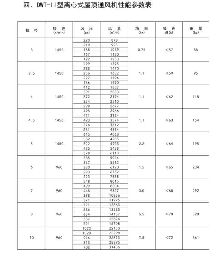 二、DWT-II、III 系列離心式屋頂風機