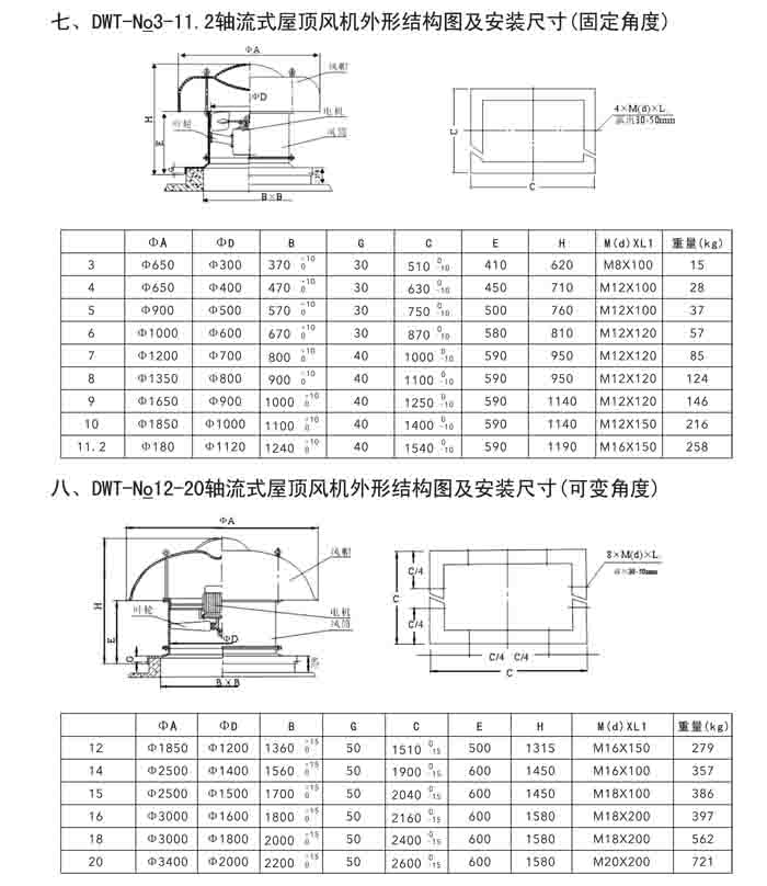 二、DWT-II、III 系列離心式屋頂風(fēng)機(jī)